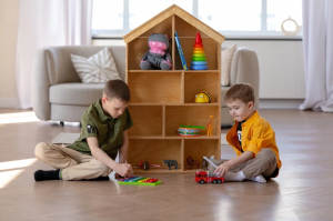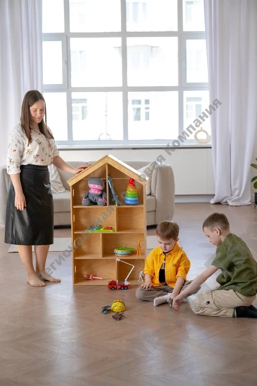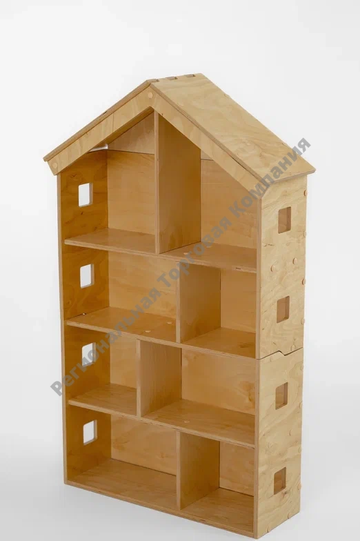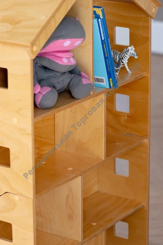Стеллаж для игрушек и книг "Волшебный домик" натуральный лак