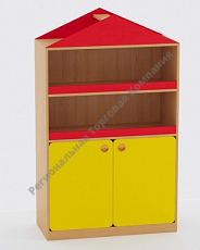 Детский стеллаж стилизован под домики, поэтому гармонично впишется в интерьер детского сада. Яркие цвета ламинированной ДСП, используемой при изготовлении, обязательно создадут радостное и озорное настроение в игровой комнате.