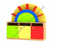 Каждый модуль может быть самостоятельным элементом декора и обстановки игровой комнаты в детском саду. В зависимости от необходимости и бюджета организации можно самостоятельно комплектовать и комбинировать любое количество секций детского стеллажа Радуга.