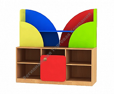 Каждый модуль может быть самостоятельным элементом декора и обстановки игровой комнаты в детском саду. В зависимости от необходимости и бюджета организации можно самостоятельно комплектовать и комбинировать любое количество секций детского стеллажа Радуга.
