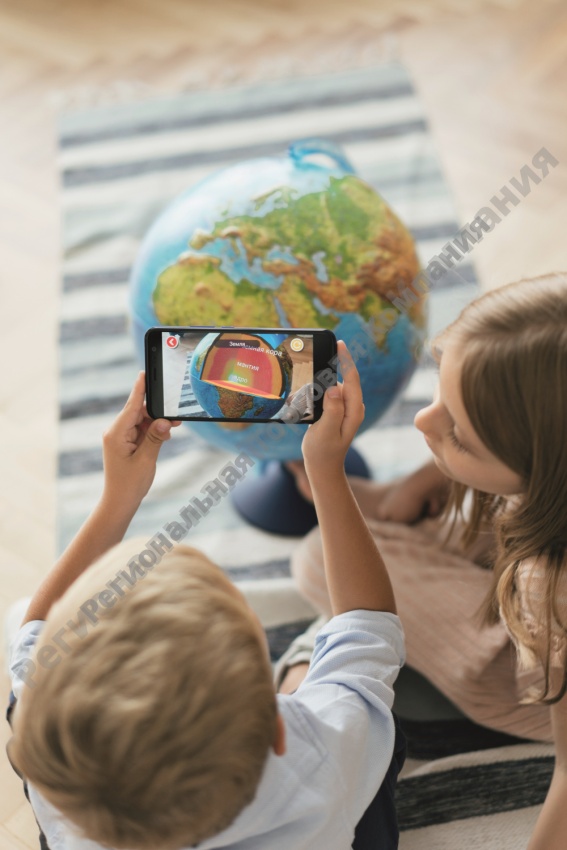 Благодаря специальному бесплатному приложению и функции 3D AR Технология глобус "подключается" к планшету или смартфону.