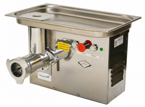 Мясорубка БЕЛТОРГМАШ МИМ-150 используется на предприятиях общественного питания, торговли, а также в производственных цехах, деятельность которых связана с выпуском гастрономических товаров, для измельчения мяса и рыбы на фарш, повторного измельчения котлетной массы и набивки колбас. Модель оснащена приводом, съемной чашей и функцией "Реверс", которая позволяет при наматывании жил освободить шнек без дополнительной разборки машин. Корпус выполнен из алюминия, облицовка - из нержавеющей стали.