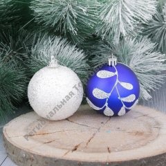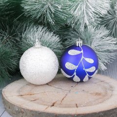 Набор шаров пластик Веточка d-7 см 6 шт бело синий