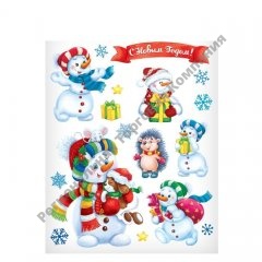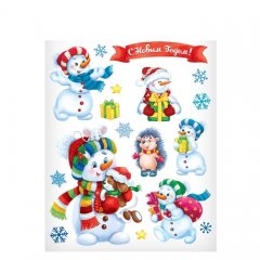 Интерьерная наклейка со светящимся слоем «Снеговички», 21 х 29,7 см набор 4ш
