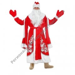 Карнавальный костюм "Дед Мороз", шуба с серебряным узором, шапка, варежки, р-р 52-54, длина 145 см