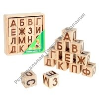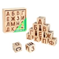 Кубики-азбука, 16 деталей, в деревянной коробке