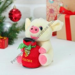 Мягкая ммузыкальная игрушка-копилка "Хрюша" с бантиком, цвета микс