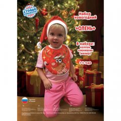 Набор новогодний "Олень", колпак, слюнявчик", велюр, 1-3года (велюр по взаимозачету) 3803981