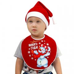 Набор новогодний "Снеговик", велюр, колпак, слюнявчик, 1-3 года