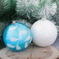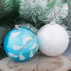 Набор шаров пластик Веточка d-10 см 4 шт бело голубой