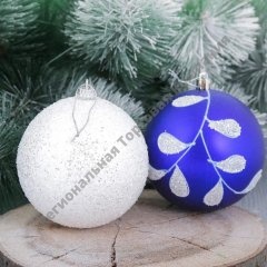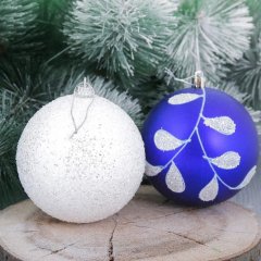 Набор шаров пластик Веточка d-10 см 4 шт бело синий
