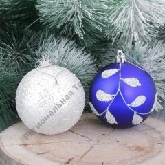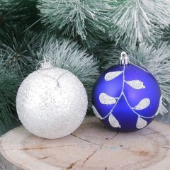 Набор шаров пластик Веточка d-8 см 6 шт бело синий