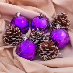 Набор украшений пластик 6 см 2 шт Шишка фиолет