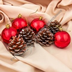 Набор украшений пластик 6 см 2 шт Шишка красный