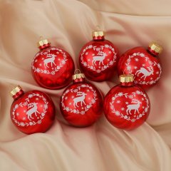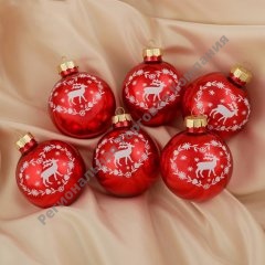 Набор ёлочных шаров d-6 см Олень (набор 6 шт) красный