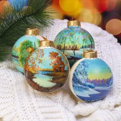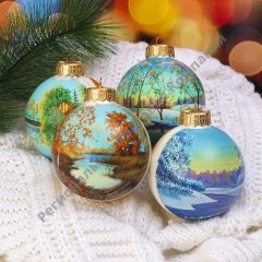 Набор ёлочных шаров ручной работы Времена года 4шт 10 см