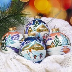 Набор ёлочных шаров ручной работы Зимняя игра 4шт 8 см
