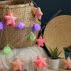 НИТЬ, 4м. с насад. “Звезды и розы”, Н.С. LED-20-220V, 8 режимов, МУЛЬТИ