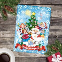 Открытка письмо Деду Морозу "Дед Мороз с детишками" набор 20шт