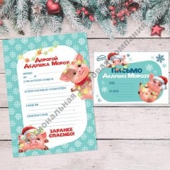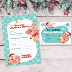 Письмо Деду Морозу "Свинки с гирляндой" набор 6шт