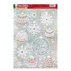 Наклейка‒голография «Новогодние игрушки», 21 х 29,7 см набор 4шт