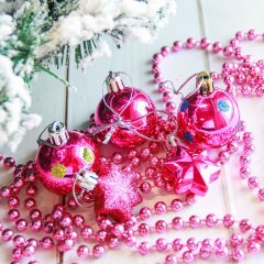 Ёлочные украшения Горох (набор 18 шт.), малиновые