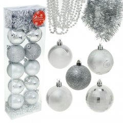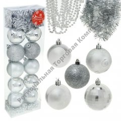 Ёлочные украшения Серебро с бусами и мишурой (набор 12 шт.)