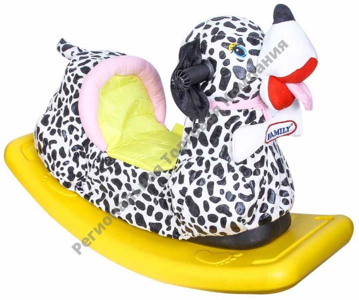 Детская игровая качалка FAMILY F-784, стилизованная под далматинца, изготовлена из яркого, однородного и надежного пластика.