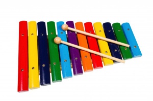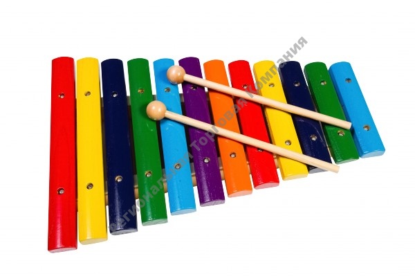 Ксилофон – ударный музыкальный инструмент, имеет древнее происхождение — простейшие инструменты подобного типа встречаются у разных народов Африки, Юго-Восточной Азии и Латинской Америки. В Европе первые упоминания о ксилофоне датируются началом XVI века. Представляет собой ряд деревянных брусков разной величины, настроенных на определённые ноты, по которым ударяют палочками. Инструмент может использоваться как соло, так и в ансамбле. Ксилофон поможет развить музыкальный слух ребенка, чувство ритма, и при этом настолько легок в применении, что даже у малыша, не владеющего нотами, обязательно получится мелодия.