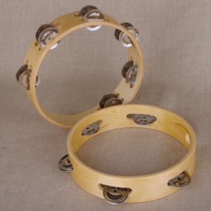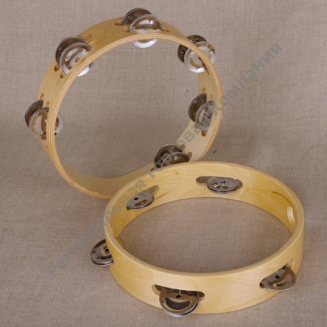 Тамбурин представляет собой деревянный обод толщиной 6 мм, диаметром 20 см, шириной 4 см на котором крепятся 5 пар металлических тарелочек. В нижней части тамбурина имеется утоньшение для удобного захвата.