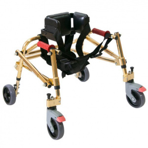 Ходунки на четырех колесах реверсивного типа предназначены для детей-инвалидов, страдающих различными формами ДЦП, способствуют устранению нарушений осанки и патологической установки стоп, помогают удерживать равновесие при ходьбе и стоянии.