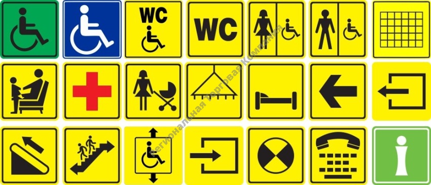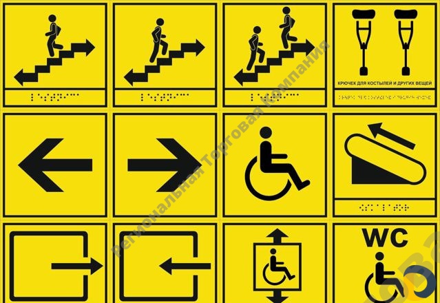 Данные пиктограммы предоставляют людям с ограничениями зрения информацию о: