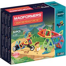 С набором Магформерс Mountain Adventure Set Ваш ребенок соберет самые разные автомобили для путешествий по горным дорогам и животных, которых там можно встретить. Отличительная особенность набора «Magformers Jungle Adventure Set» — мотоциклетное колесо. Этот аксессуар незаменим на крутых и непредсказуемых горных дорогах. Наше электронное пособие подскажет, как собрать горный мотоцикл или внедорожник, которые не подведут в опасном путешествии.