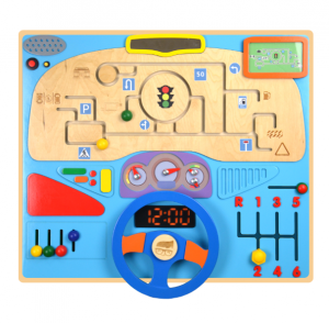 «Правила Дорожного Движения» — это новый бизиборд 2018 года от производителя деревянных игрушек «Умничка». Настенная тактильно-развивающая игра предназначена для оснащения групп и кабинетов педагогов в детских садах согласно ФГОС ДО. Бизиборд ПДД воплощает заветную детскую мечту побывать на месте водителя авто. Поэтому и мальчики, и девочки с удовольствием «садятся за руль». Воспитателю остается только поддержать инициативу ребят и организовать поочередное вождение. Учитывая интерес, который вызывает автомобильная панель у детишек, взрослый легко поможет дошкольнику освоить азы вождения и главные правила дорожного движения.