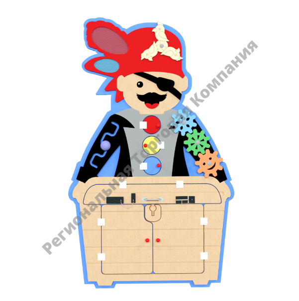 Многофункциональный бизиборд для всестороннего развития. «Пират» поможет развить внимание, логику, креативность, тактильные навыки у детей от года до 6-ти лет. Панель состоит из двух частей: приветливый пират и большой сундук с секретом. Бизиборд подходит для использования в ДОУ, развивающих центрах и дома. Адаптирован для детей с ограниченными возможностями.