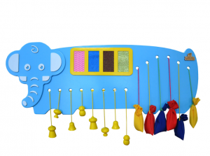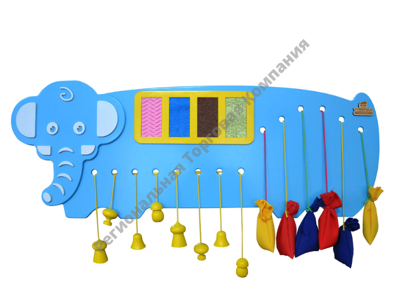 Бизиборд «Слоник», созданный по методике Монтессори, предназначен для развития мелкой моторики, развития осязания, обучения цветам. Для этого на доске размещены несколько модулей: замочки, рифленая поверхность, яркие мешочки с наполнителями, фигуры.