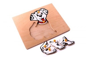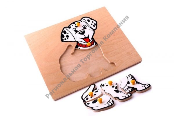 Деревянный планшет размером 24х24 см, на котором изображена разборная картинка, состоящая из пяти элементов, к каждому из которых прикреплена удобная ручка.