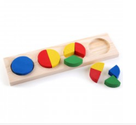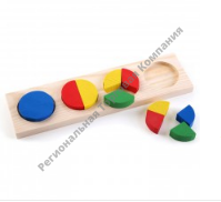• В наборе деревянная основа и круглые детали, которые разделены на 1, 2, 3 и 4 частей.