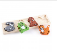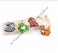 • В наборе деревянная основа с фигурными углублениями для зверушек.