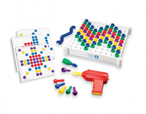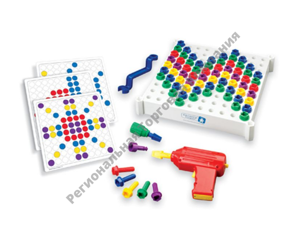 Базовые насыщенные цвета болтиков прекрасно контрастируют с белым фоном рабочей панели, позволяя ребенку сосредоточиться на процессе создания осознанного узора.