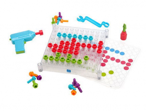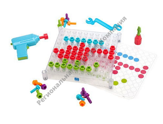 Абсолютная уникальность набора в прозрачной игровой панели! Подкладывая под панель карточки с шаблонами (входят в комплект), ребенку будет намного проще создать свои первые шедевры. Поняв принцип, малыш смелее будет экспериментировать над собственными картинами из цветных болтиков.