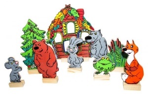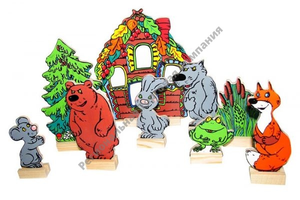 В состав настольного театра «Теремок» входит 9 деталей: мышка, лягушка, заяц, лиса, волк, медведь, домик, елка, камыши и 9 подставок к ним. Расскажите и покажите своему малышу сказку «Теремок», и вы увидите, как эмоционально отреагирует он на увиденное. И это не только театр, но и замечательный логопедический материал. Подрастая, ребенок будет сам разыгрывать сказку, развивая творческое мышление, речь (она становится образнее, выразительнее), обогащая словарный запас. Игра с настольным театром знакомит ребенка с народным творчеством, развивает навыки связной и логической речи, умение пересказывать.