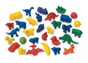 Этот набор отлично подходит для знакомства с основами сортировки. Дети обожают эти прочные, мягкие резиновые фигурки. Животные, транспорт, фрукты, динозавры – каждый ребенок найдет себе фигурки по душе. Они приятны на ощупь, прекрасно лежат в детской руке, не выскальзывают и стимулируют подушечки пальцев. Распределяя фигурки по разным характеристикам (цвет, количество, размер и проч.), ребенок развивает такие математические умения, как простой счет, сложение и вычитание, следование алгоритму.