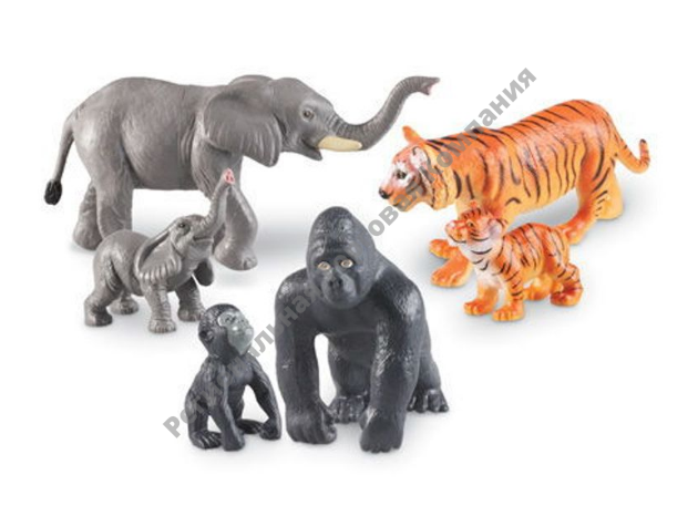 Набор "Животные джунглей. Мамы и малыши" включает как фигурки взрослых животных, так и их детенышей