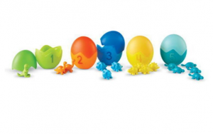 В каждом яйце можно найти количество динозавров, соответствующее цифре на яйце.
