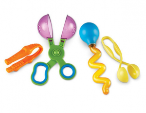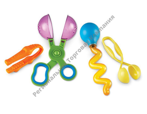 Чудесный набор «на все случаи жизни»! С этим набором из четырех предметов ребенок будет крутить, зачерпывать, сжимать предметы , тем самым развивая мышцы кисти. С помощью набора малыш сможет лучше овладеть навыками мелкой моторики, которые необходимы для того, чтобы научиться пользоваться ножницами и писать.