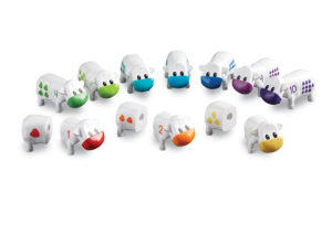 Цветные телята продаются в удобной пластиковой корзине, обеспечивающей удобное хранение дидактического материала.
