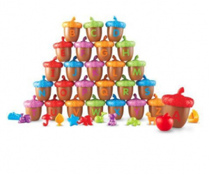 Соединяя половинки,ребенок запоминает соответствующие заглавные и строчные буквы.Конфигурация желудей позволяет их штабелировать и собирать в пирамидки!