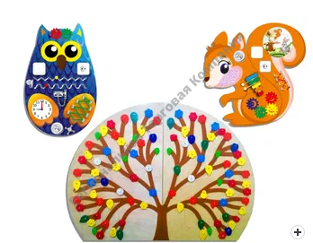 Набор бизибордов "Лесная" - это набор из трех развивающих панелей, изображающих сову, белку и дерево. Набор предназначен для индивидуальных и коллективных занятий в детских центрах и дошкольных учреждениях.