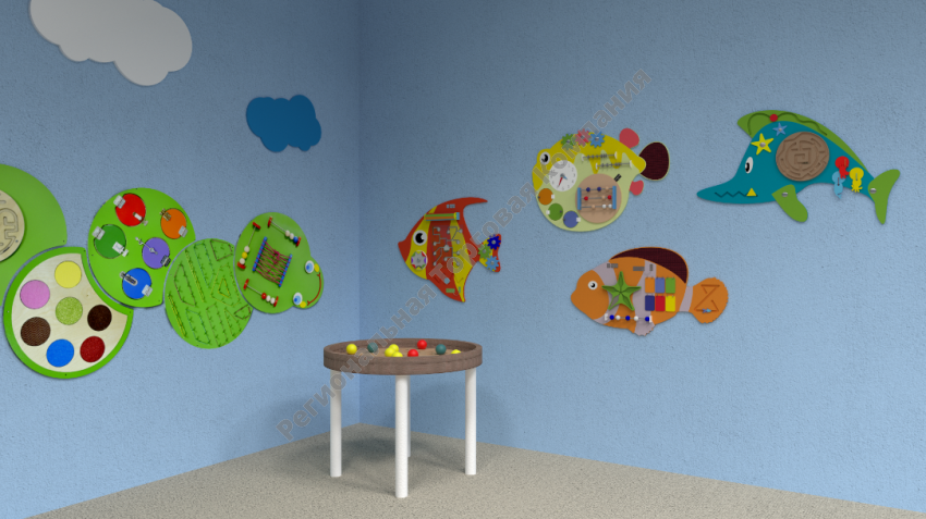 «Подводный мир» — это четыре настенных тактильно-развивающих панели, созданных в 2018 году для эффективного развития детей в детских садах и специализированных дошкольных учреждениях. Регулярные занятия с обитателями «Подводного мира» помогают деткам получить новые умения и полезные навыки.
